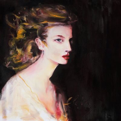 Through Elçin’s brushstrokes, the woman transcends the fine line between light and shadow,